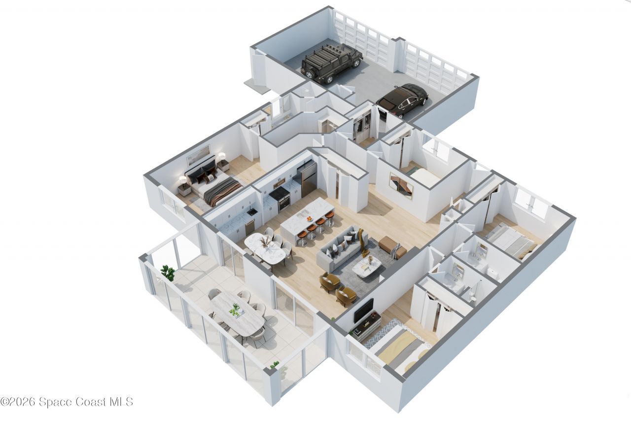 Brand New Custom Construction | 4-Car Garage | 1.4 Acre Lot | Completion Summer 2026. Experience luxury living in this stunning to be built custom home, situated on an expansive 1.4-acre lot in a private nature setting. This home features high-end finishes, thoughtful design, and builder warranties for peace of mind. Step inside to an open-concept floor plan with vaulted and soaring ceilings, fireplace, creating a bright and spacious atmosphere perfect for modern living and entertaining. The des...Brand New Custom Construction | 4-Car Garage | 1.4 Acre Lot | Completion Summer 2026. Experience luxury living in this stunning to be built custom home, situated on an expansive 1.4-acre lot in a private nature setting. This home features high-end finishes, thoughtful design, and builder warranties for peace of mind. Step inside to an open-concept floor plan with vaulted and soaring ceilings, fireplace, creating a bright and spacious atmosphere perfect for modern living and entertaining. The designer kitchen is a true centerpiece, featuring: Large center island, Quartz countertops, 42 custom wood cabinets with crown molding, Stainless steel appliances, Extended wet bar with sink and beverage cooler. The split-bedroom layout provides privacy, while the luxurious primary suite includes: Elegant tray ceiling, Large walk-in closets, Double sink Quartz vanity, Custom tiled walk-in shower. Additional highlights include: Upgraded 9 x 47 hardwood-style porcelain plank tile throughout main living areas,waterfall edge island, Hurricane shutters, Oversized truss-covered porch ideal for outdoor living, Massive 4-car garage. The large lot provides plenty of space for a future pool, plus room to store a boat or RV on property. Seller offering closing cost incentives when using the preferred lender. This exceptional home combines modern coastal design, quality craftsmanship, and space to live, entertain, and grow.