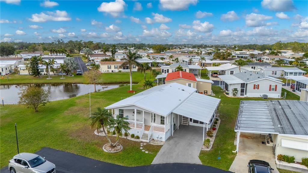 Port Charlotte Village was voted #1 manufactured home community in 2024. ** NOT IN FLOOD ZONE** Welcome to this stunning 3-bedroom, 2-bathroom turnkey home located in a highly desirable 55+ community with a low HOA. Perfectly blending comfort, style, and convenience, this spacious and beautifully maintained property is designed for easy Florida living.As you approach, the large covered front porch immediately catches your eye, offering a cozy space to enjoy your morning coffee or chat with neighbors. The home also features a spacious side screened-in lanai, complete with a storage shed, with all screens freshly replaced in December 2024. A fresh pressure wash of the home and roof ensures a spotless exterior.Outdoors, you'll find a concrete side patio overlooking a serene lake-a perfect spot to unwind, host gatherings, or simply enjoy the peaceful views. Inside, the home boasts tile flooring throughout, creating a seamless flow and easy upkeep. The bright and open kitchen is a standout feature, with ample cabinet space, a built-in pantry, and a cozy eat-in area for casual dining. Adjacent to the kitchen, the dining room features a beautifully crafted built-in hutch, adding character and practicality.Each of the three bedrooms is generously sized and includes large walk-in closets, ensuring plenty of storage for all your needs. The primary suite offers a private retreat, while the secondary bedrooms are perfect for guests or a home office.Situated in a prime location, this home is close to elite golf courses, renowned restaurants, stunning blue Florida beaches, entertainment, and an abundance of shopping options. Whether you're looking for a peaceful retreat or a home close to the action, this property truly offers the best of both worlds.Don't miss your opportunity to make this exceptional home yours-schedule your private showing today!