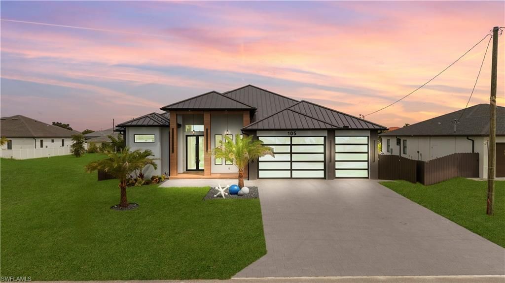Elevate your lifestyle in this brand-new, ultra-luxury estate at 105 SW 33rd Place, perfectly positioned in the prestigious SW Cape Coral. This 4-bedroom, 3-bathroom masterpiece spans nearly 2,400 sq ft of impeccably designed living space, where every detail exudes sophistication and modern elegance.Step into soaring ceilings, oversized 48x48 imported porcelain tiles, and 10' impact glass sliders that bathe the home in natural light. The chef's kitchen is a work of art, featuring Talmaha quartz ...Elevate your lifestyle in this brand-new, ultra-luxury estate at 105 SW 33rd Place, perfectly positioned in the prestigious SW Cape Coral. This 4-bedroom, 3-bathroom masterpiece spans nearly 2,400 sq ft of impeccably designed living space, where every detail exudes sophistication and modern elegance.Step into soaring ceilings, oversized 48x48 imported porcelain tiles, and 10' impact glass sliders that bathe the home in natural light. The chef's kitchen is a work of art, featuring Talmaha quartz countertops, bespoke cabinetry with smart lighting, high-end Italian appliances, and a built-in coffee station. The primary suite offers a private sanctuary with a hidden entry, LED-lit custom walk-in closet, spa-inspired bath with designer finishes, and direct access to your poolside oasis.Outdoors, indulge in a 14x28 pool with in-ground spa, floating steps, ambient LED lighting, built-in outdoor kitchen, and lush tropical landscaping-perfect for entertaining or serene relaxation. Additional features include a 3-car garage, smart home technology, and the peace of mind that all assessments are fully paid.Rarely does a property combine unmatched luxury, turnkey readiness, and an exceptional location near boating, shopping, dining, and top schools. Schedule your private showing today and experience Cape Coral living at its absolute finest.