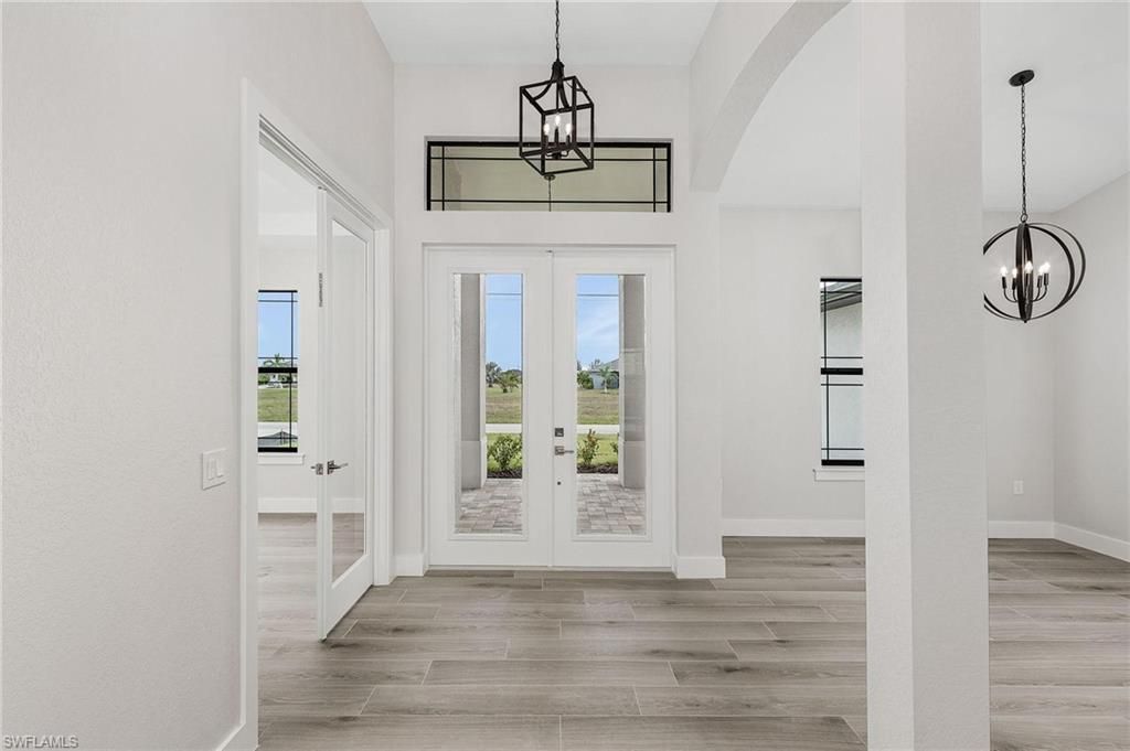 Enjoy the Florida lifestyle in this stunning new construction pool home located in desirable SW Cape Coral. LUXURY STANDARD: Not builder grade. We include 9x47 Porcelain Plank tile throughout the entire home (zero carpet), soaring tray ceilings, 5 baseboards throughout, 8' doors. This 4 bedroom+Den/3 bath modern style floor plan will surely impress. Double glass door entryway, foyer opens up to the large living room with vaulted ceilings, dining area and separate den/game room, plenty of room fo...Enjoy the Florida lifestyle in this stunning new construction pool home located in desirable SW Cape Coral. LUXURY STANDARD: Not builder grade. We include 9x47 Porcelain Plank tile throughout the entire home (zero carpet), soaring tray ceilings, 5 baseboards throughout, 8' doors. This 4 bedroom+Den/3 bath modern style floor plan will surely impress. Double glass door entryway, foyer opens up to the large living room with vaulted ceilings, dining area and separate den/game room, plenty of room for entertaining. The kitchen is a dream featuring solid wood cabinetry with crown moulding, soft close hardware, Calacatta Quartz counters and premium stainless steel appliances. Peace of Mind -PGT brand impact glass on front door, all windows, and slider. No struggling with shutters in a storm-a massive insurance savings advantage. Split floor plan featuring three large guest bedrooms, primary bedroom suite with two generous size walk in closets, freestanding soaking tub, walk-through shower with floor-to-ceiling tile, and dual vanity. Large 13'x26' pool facing west for those beautiful sunsets and upgraded clear view screen enclosure. Oversized lot 85'x125'. Connected to city water, sewer and irrigation. Don't settle for a 8-12 months wait on a dirt lot. Move into luxury this month.