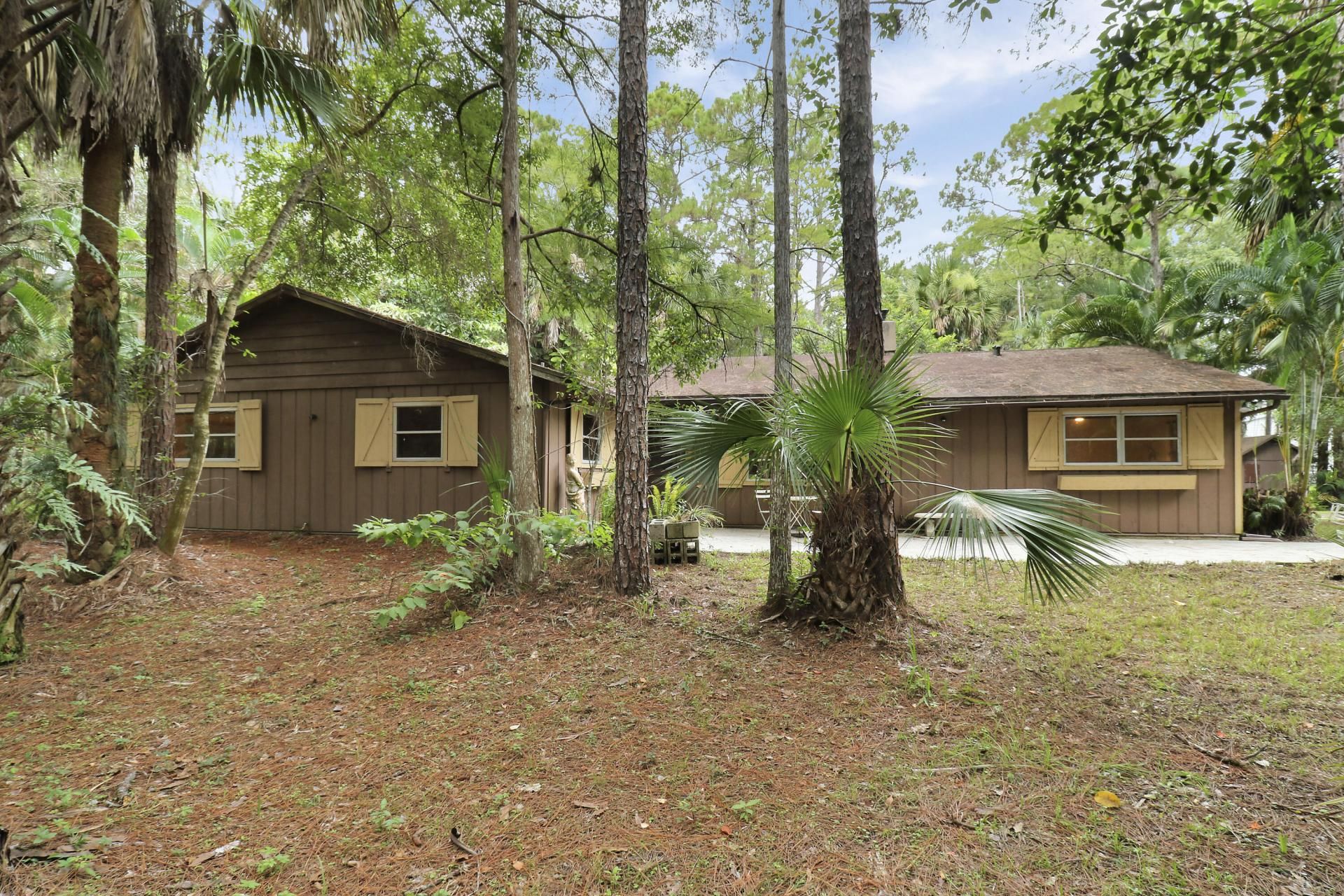 Discover the charm of this rustic and cozy 4-bedroom, 3-bathroom home nestled on 1.25 acres on a serene, low-traffic road with only 7 homes. The split plan offers 2 bedrooms on each side, perfect for privacy. Enjoy cooking with a propane gas stove, and relax under the beautiful faux tongue and groove ceiling. The wood-burning fireplace adds a touch of warmth, while the large laundry room with a separate back door offers convenience. The property features a 2-car carport, spacious front and back patios, a 120-gallon propane tank, a large shed, and a fenced yard. Close to Jupiter Farms Park and near the rear entrance of Riverbend Park. Minutes from Publix, Busch Wildlife, I-95, and the Florida Turnpike, this home is only 10 miles from Jupiter Beach. Home is a fixer upper. This is a handyman home and it needs TLC: the roof (1993) needs replacement, the 4th bedroom ceiling has a stain from a past leak, and some drywall and wood siding repairs are necessary. Two toilets need maintenance, and a new dishwasher is required. The security system works but needs maintenance. With two A/C units (Trane XL 1400 from 1996 and Rheem from 2000), this home is a cash purchase preferred, no FHA or VA. Note: stained glass in the living room and primary bathroom do not convey.