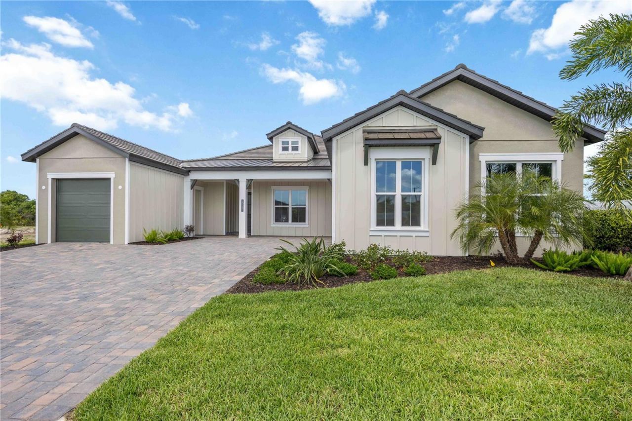 RARE OPPORTUNITY TO OWN THE VERY LAST BRAND NEW HOME IN GRAN PLACE!! Welcome to Gran Place at Wellen Park - an exclusive Sam Rodgers Homes private enclave of just 42 custom homes. Introducing the Destin Modern Farmhouse-Completed Quick Move-In Home. This 2,932 sq. ft. home offers 3 bedrooms, 3 baths, a bonus room, den/office, with PGT impact glass windows and doors and oversized 2-car garage + separate 1 car garage. Outdoor living shines with a private pool, spa, outdoor kitchen, spacious paver ...