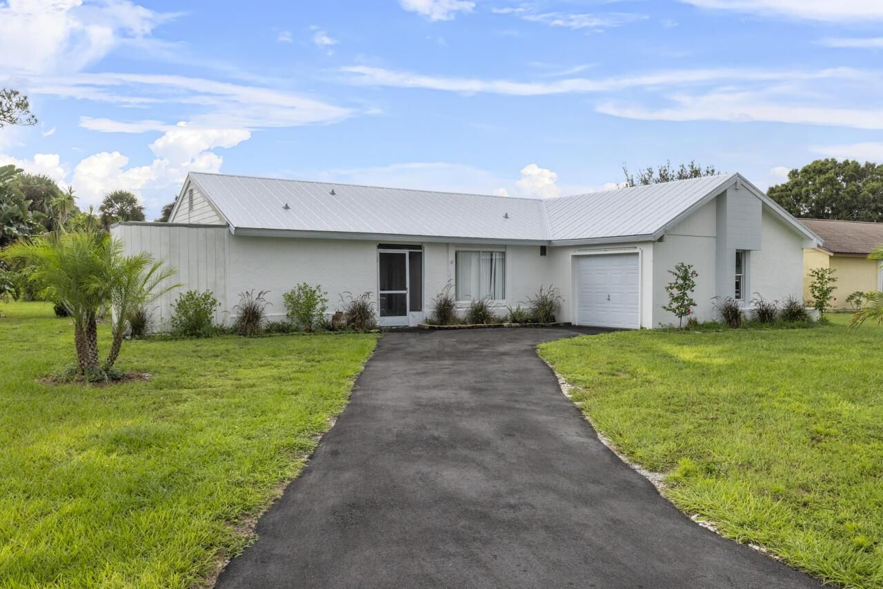 This 3-bedroom, 2-bathroom home with a 1-car garage is full of potential and ideally situated in Port St. Lucie, close to shopping, dining, and entertainment. It features a brand-new metal roof, spacious living areas, and laminate flooring. The eat-in kitchen offers ample space, and the master bedroom includes a walk-in closet. The backyard boasts a screened patio with plenty of room to add a pool. While this home could benefit from some updates, it's a fantastic opportunity to personalize and make it your own. Don't miss the chance to add your personal touch to this property!