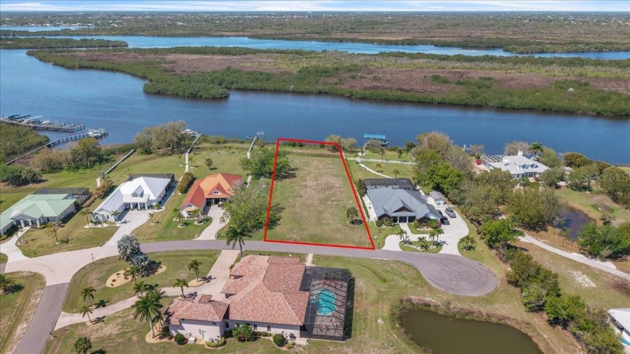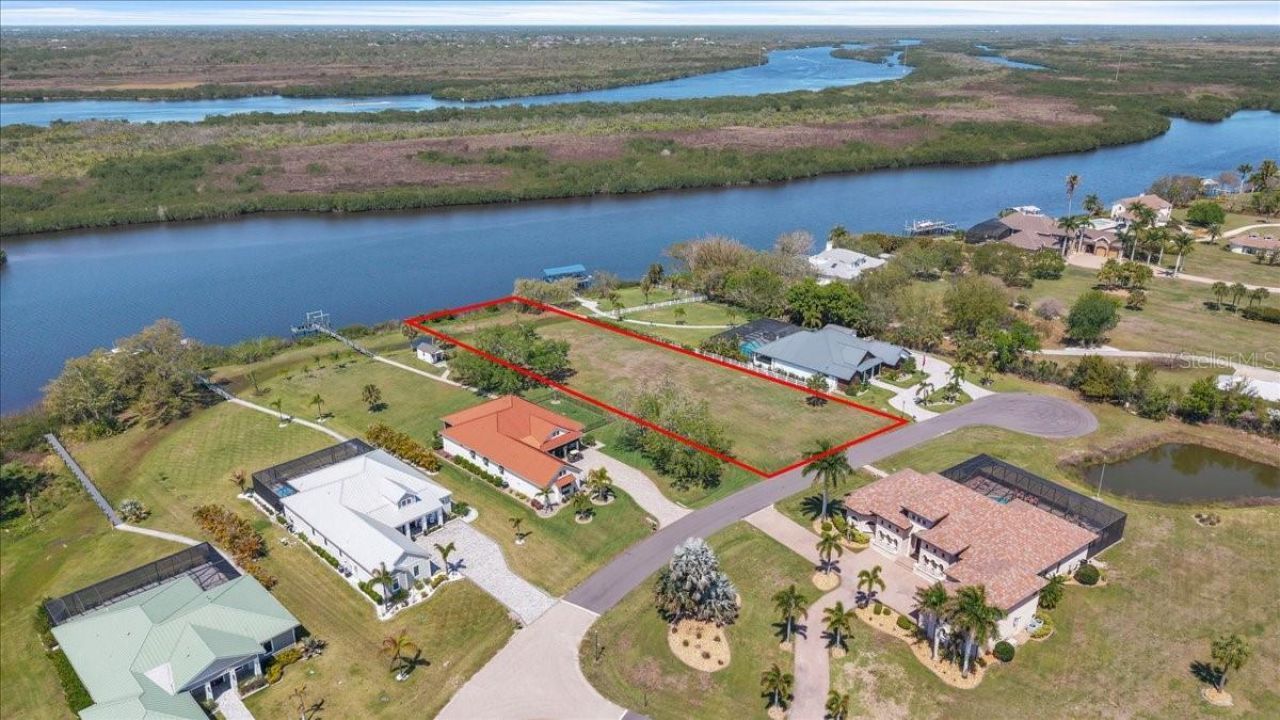 Own Your Slice of Waterfront Paradise in Punta Gorda! Seize the opportunity to own this stunning 1.03-acre waterfront lot in the highly sought-after Estates on Peace River, a private gated luxury community nestled between Fort Myers and Sarasota in scenic Southwest Florida. This extra-large homesite boasts 120 feet of water frontage, public water and sewer, and quick Gulf access with only two 40+ ft. bridges along the way. Situated on a quiet cul-de-sac surrounded by premium homes, the lot offer...Own Your Slice of Waterfront Paradise in Punta Gorda! Seize the opportunity to own this stunning 1.03-acre waterfront lot in the highly sought-after Estates on Peace River, a private gated luxury community nestled between Fort Myers and Sarasota in scenic Southwest Florida. This extra-large homesite boasts 120 feet of water frontage, public water and sewer, and quick Gulf access with only two 40+ ft. bridges along the way. Situated on a quiet cul-de-sac surrounded by premium homes, the lot offers privacy, tranquility, and serene waterfront living. According to county records, no scrub jays are present on the lot at the time of listing. Residents enjoy assigned private boat docks on the Peace River, a community boat launch, and a tiki hut pavilion overlooking the river, perfect for gatherings or quiet relaxation. Homesites in this exclusive enclave are oversized, offering direct deep-water access, while custom homes feature modern coastal, Old Florida, or Mediterranean architecture with 3-4+ bedrooms, 3+ baths, private pools, and expansive lanais. Enjoy boating, fishing, and waterfront living while remaining just minutes from downtown Punta Gorda, shopping, schools, parks, churches, and I-75. With low HOA fees and a peaceful, exclusive setting, this is a rare opportunity to build your dream home on the Peace River.