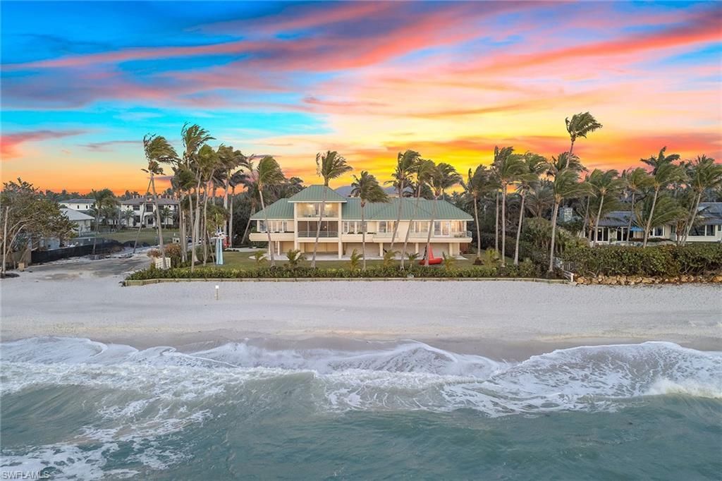 An extraordinary Old Naples beachfront estate, this rare offering encompasses approximately .67 acres with an impressive 169 feet of pristine Gulf frontage, delivering an unparalleled combination of privacy, scale, and a prime location just blocks from the world-class boutiques, galleries, and dining of Fifth Avenue South and Third Street South. Designed by acclaimed architect Richard Morris, the art deco–inspired residence was masterfully conceived to frame sweeping Gulf views and sunset...