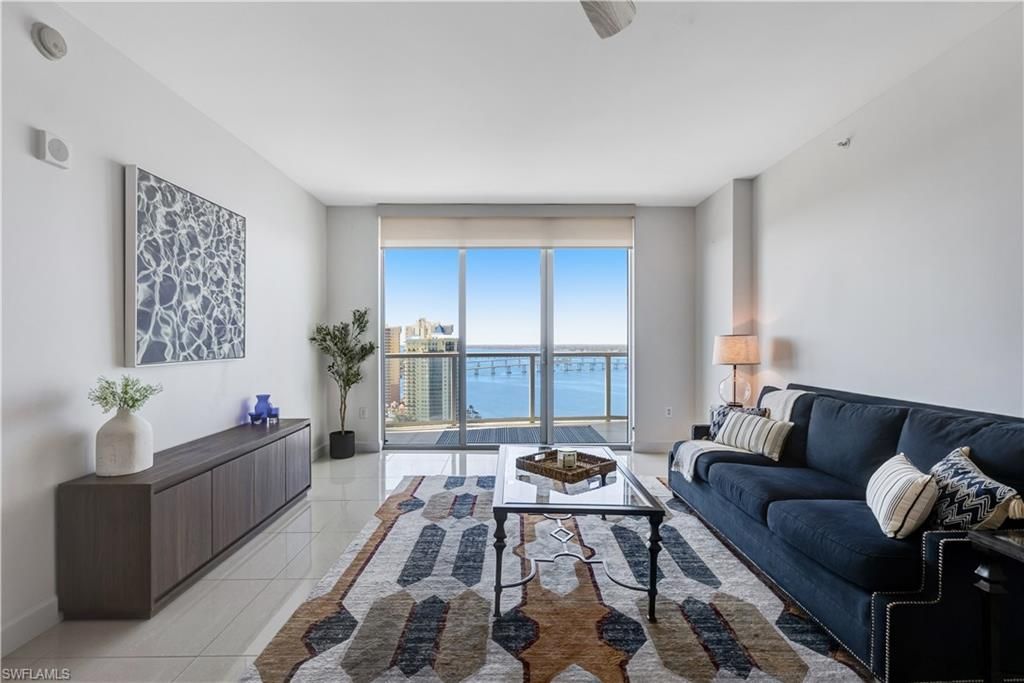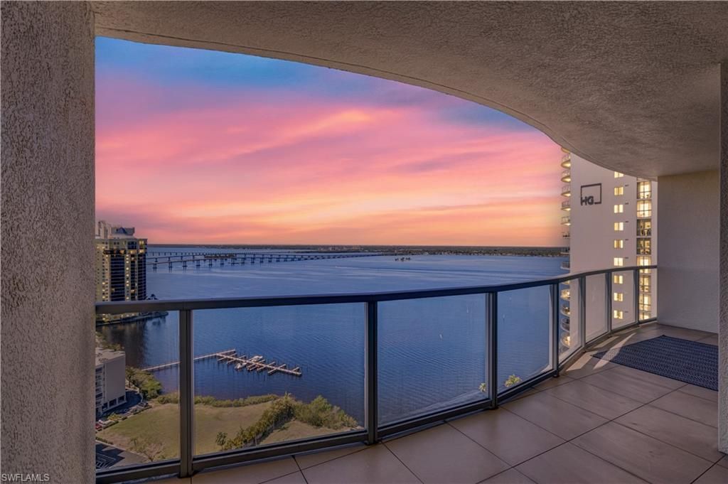 Welcome to the 25th floor of the Oasis! This turnkey furnished condominium has been professionally designed and offers 2 bedrooms, 2 bathrooms overlooking the Caloosahatchee River and sweeping sunsets. The unit's orientation and design prevent added heat throughout the day while floor to ceiling impact resistant sliders flood the residence with natural light and frame panoramic river views. Beautifully updated bathrooms feature a spa like shower, peaceful tile accents, and every detail has been ...Welcome to the 25th floor of the Oasis! This turnkey furnished condominium has been professionally designed and offers 2 bedrooms, 2 bathrooms overlooking the Caloosahatchee River and sweeping sunsets. The unit's orientation and design prevent added heat throughout the day while floor to ceiling impact resistant sliders flood the residence with natural light and frame panoramic river views. Beautifully updated bathrooms feature a spa like shower, peaceful tile accents, and every detail has been created to reflect a balance of luxury and livability. The modern kitchen provides ample cabinetry, a breakfast bar with shiplapping, and dinette set. The residence also includes a premium under building parking space (#3027) is conveniently located near the elevator entrance which is secured with private access. Investors - Rentals are allowed with a monthly minimum lease term and may be rented up to three times annually. Two pets are permitted and there's even a dedicated pup park for playtime. The properties expand 17-acres of meticulous grounds, true resort style amenities that include the beautifully renovated pool, expansive sun deck, covered patio, spa, sauna, community kitchen, state of the art fitness center, tennis courts and pickleball, billiards room, business lounge, BBQ area, boat launch, mooring dock, and riverfront walking path. The building is well maintained with recent exterior painting, an updated roof, and front desk staff with concierge services. Hope on the trolley just out front of the complex and head downtown to the River District which is just minutes from waterfront dining, boutique shopping, art galleries and entertainment. Every lifestyle thrives at the Oasis!