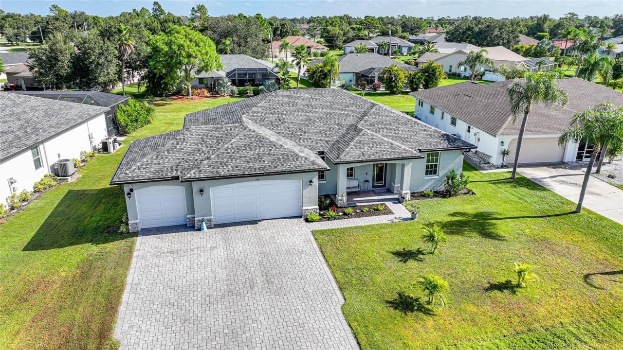 HUGE PRICE REDUCTION!!! on this Stunning 2023 Pool Home in Deep Creek. Located in the highly sought-after, deed-restricted community of Deep Creek in Section 20, this newly built 2023 POOL home combines quality craftsmanship with modern Florida living. This spacious 4-BEDROOM, 2-BATH residence features a 3-CAR GARAGE with EPOXY FLOORING, dimensional roof shingles, decorative STONE ACCENTS on the front elevation, a PAVED DRIVEWAY, and a screened, PAVED LANAI. Step inside and you'll immediately no...HUGE PRICE REDUCTION!!! on this Stunning 2023 Pool Home in Deep Creek. Located in the highly sought-after, deed-restricted community of Deep Creek in Section 20, this newly built 2023 POOL home combines quality craftsmanship with modern Florida living. This spacious 4-BEDROOM, 2-BATH residence features a 3-CAR GARAGE with EPOXY FLOORING, dimensional roof shingles, decorative STONE ACCENTS on the front elevation, a PAVED DRIVEWAY, and a screened, PAVED LANAI. Step inside and you'll immediately notice the open-concept design with soaring 9'4 tray ceilings, 8-foot doors, and 12x24 TILE FLOORING THROUGHOUT - with no carpeting. The chef's kitchen boasts a large CENTER ISLAND with seating area, GRANITE countertops, raised panel cabinetry with soft-close doors, stainless steel appliances, and a CLOSET PANTRY. The GREAT ROOM flows seamlessly to the oversized, screened lanai, perfect for entertaining or relaxing by your SALTWATER HEATED POOL with a zero-entry SLOPED DESIGN for easy access. This split floor plan offers an office, two guest bedrooms with double-door closets and ceiling fans, and a full guest bath with granite counters, tub and shower combo. The luxurious primary suite features tray ceilings, his-and-hers closets, private lanai access, and a glass walk in shower with dual sinks and granite countertops. Additional highlights include: PGT HURRICANE IMPACT insulated WINDOWS AND DOORS. No need to worry about putting up shutters during hurricane season! Remote-operated Kevlar screens on the lanai Sprinkler system and seamless gutters 50-amp hookup for a portable generatorTucked away on a quiet cul-de-sac, this home offers exceptional value, quality, and location - making it one of the best finds in Deep Creek.
