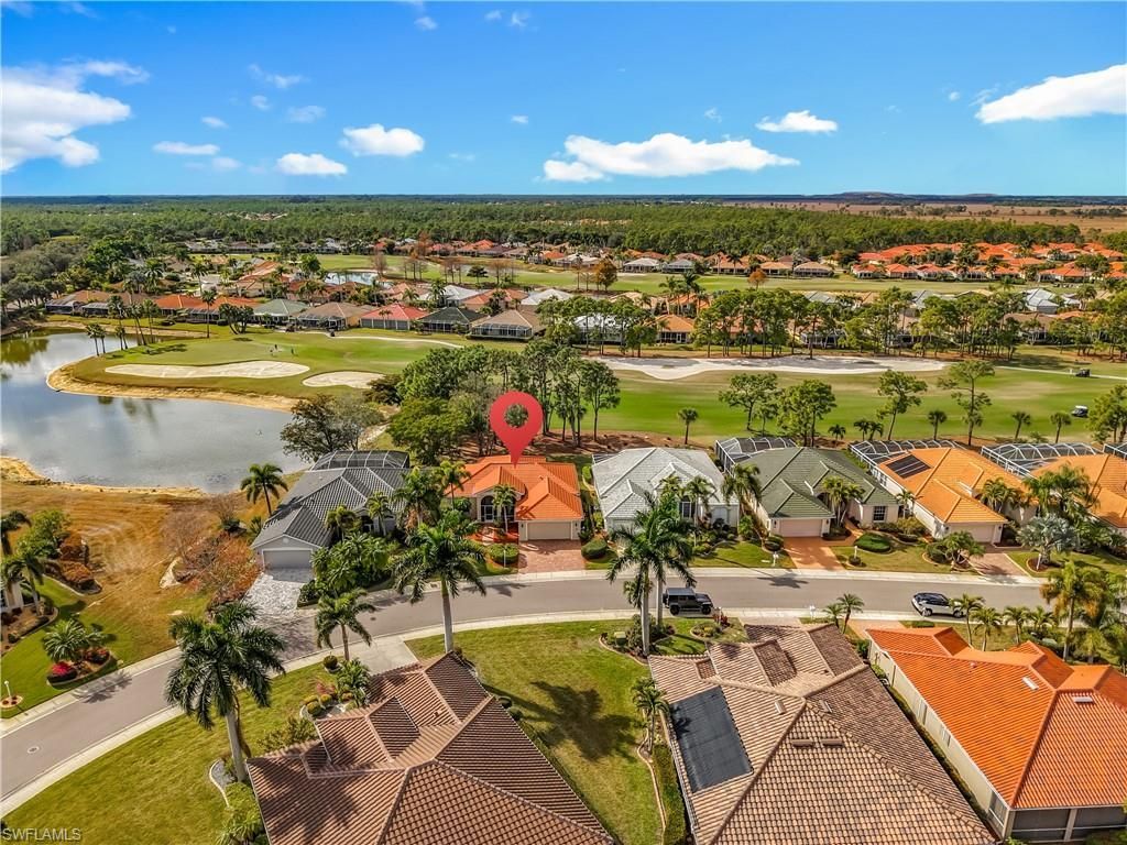 Immaculate RENOVATED and MODERNIZED Ibis 2 model home on the GOLF COURSE in HERONS GLEN COUNTRY CLUB showcases extensive improvements that you are going to love! The transformed kitchen now features a LARGE SINGLE-LEVEL ISLAND, natural stone countertops, an oversized quartz undermount sink, newer GE stainless steel appliances, convenient PULL-OUT drawers, and a filtered water tap with REVERSE OSMOSIS system. The master bathroom has been similarly renovated with elegant Pompeii QUARTZ COUNTERTOPS...Immaculate RENOVATED and MODERNIZED Ibis 2 model home on the GOLF COURSE in HERONS GLEN COUNTRY CLUB showcases extensive improvements that you are going to love! The transformed kitchen now features a LARGE SINGLE-LEVEL ISLAND, natural stone countertops, an oversized quartz undermount sink, newer GE stainless steel appliances, convenient PULL-OUT drawers, and a filtered water tap with REVERSE OSMOSIS system. The master bathroom has been similarly renovated with elegant Pompeii QUARTZ COUNTERTOPS, dual rectangular sinks, and a luxurious walk-in shower with barrier-free entry that features a generous NICHE, sliced river rock flooring, and a FRAMELESS GLASS door. The guest bathroom also received quality updates including a new vanity with stone countertop, rectangular undermount sink, and new bathtub with tiled surround and niche. Recent mechanical improvements include a 2023 air conditioner with air purifier, 2024 hot water heater, 2023 NEW ROOF, and a whole-house RAINSOFT WATER CONDITIONING SYSTEM. The home offers wonderful indoor-outdoor living with a covered screened lanai and paver patio overlooking serene golf course, pine tree, and lake views with spectacular SUNSETS from a location with no risk of errant golf balls. The lanai and great room connect via DUAL TRIPLE SLIDERS IN THE GREAT ROOM. The welcoming entry features a SMART FRONT DOOR LOCK, a covered front lanai rescreened in 2025, and glass sidelights and transom window that welcome natural light into the home. Elegant finishes include tile and plank flooring, SMOOTH WALLS, TALL BASEBOARD and CROWN MOLDING. The spacious master bedroom has a WALK-IN CLOSET WITH ORGANIZATION SYSTEM, and the Guest Bedroom closet has a system too. The versatile DEN includes a door making it perfect as an office or third bedroom. Practical features include accordion metal HURRICANE SHUTTERS, an EXTRA-WIDE PAVER DRIVEWAY, myQ SMART GARAGE DOOR OPENER, Nest programmable WiFi THERMOSTAT, and a COMPOSITE TILE FLOOR and utility sink in the garage. This exceptional home is being sold fully FURNISHED and move-in ready. Herons Glen Country Club offers residents an active and welcoming lifestyle with championship golf, resort-style amenities, and a vibrant social calendar, all while maintaining affordable fees that make this community a favorite among those seeking the best of Southwest Florida living.