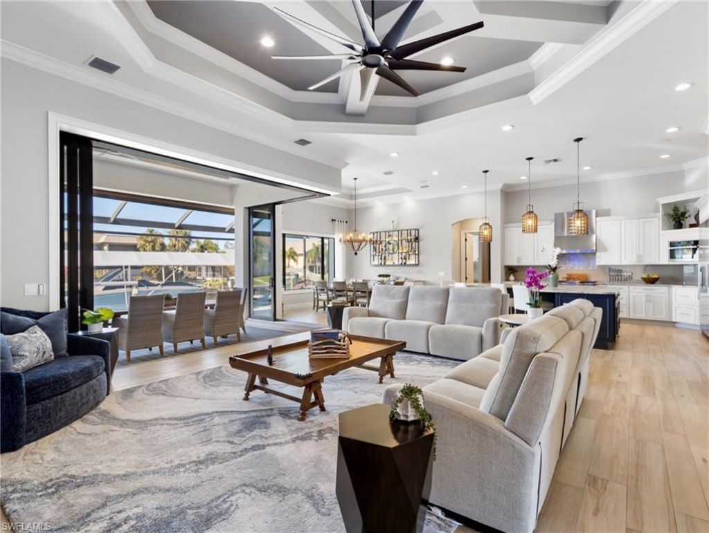 'Turnkey takes on an entirely new meaning in this exceptional waterfront residence. With more than $300,000 in owner upgrades, this home is truly move in ready-bring only your suitcase and start enjoying the luxury of Gulf access living. Offering 3 bedrooms plus a den, a saltwater infinity edge pool, and a rare 4 car garage, this 3,000 square foot home blends sophistication, comfort, and unmatched functionality. Waterfront Excellence is just the beginning. Enjoy Gulf access and three boat lifts-...'Turnkey takes on an entirely new meaning in this exceptional waterfront residence. With more than $300,000 in owner upgrades, this home is truly move in ready-bring only your suitcase and start enjoying the luxury of Gulf access living. Offering 3 bedrooms plus a den, a saltwater infinity edge pool, and a rare 4 car garage, this 3,000 square foot home blends sophistication, comfort, and unmatched functionality. Waterfront Excellence is just the beginning. Enjoy Gulf access and three boat lifts-16,000 lb with canopy, 12,000 lb, and 10,000 lb-perfect for everything from a sport boat to kayaks. All lifts were installed in 2024. Smart Home Living - the entire property is powered by a Crestron Home Automation System, giving you control over security, camera's, and audio/visual features, including wired access points throughout. Elegant Interior Designs are everywhere in this home. Enter through curved wrought iron doors into soaring 14' coffered ceilings and beautifully curated designer finishes-tile flooring, beadboard accents, barn doors, and solid core interior doors. The floor plan maximizes livable space including a walk in pantry, coffee bar, and spacious laundry room. The kitchen is designed for both culinary excellence and gathering with loved ones. Highlights include an expansive center island, gas cooktop powered by a 150 lb propane tank, high-end Miele appliances, insta-hot water and reverse osmosis system, plus custom cabinetry and a dedicated coffee bar. The main living area flows seamlessly from the kitchen. Enjoy views of the water and your stunning outdoor space from the family room as you enjoy your 98-inch television. Need to relax or retire for the evening? The split bedroom layout ensures privacy, and each suite features its own mini split AC system for personalized comfort. All bathrooms include comfort height toilets with bidet and auto flush systems. The primary suite is a retreat of its own, offering volume ceilings, a spa inspired bathroom with a walk around shower and soaking tub, and a large designer walk in closet with natural light. The outdoor space is an entertainer's dream. Multiple seating and dining areas overlook the infinity edge pool and waterfront. Here you'll enjoy a double Napoleon gas grill, infrared sauna, a pool bath just steps away, and the gas fire pit for evening relaxation. Don't forget about the 4 car garage which is climate controlled with two mini split AC units, epoxy flooring, custom tool cabinetry, a utility sink, and a large storage closet. The home also includes a 2016 roof, 2024 AC and mini split systems, impact windows and doors, electric Storm Smart screens on the lanai, whole house portable generator which can run all the mini-splits should the power go out. This stunning property redefines 'turnkey with thoughtful upgrades, luxurious finishes, and every amenity needed for effortless waterfront living. You are now home!