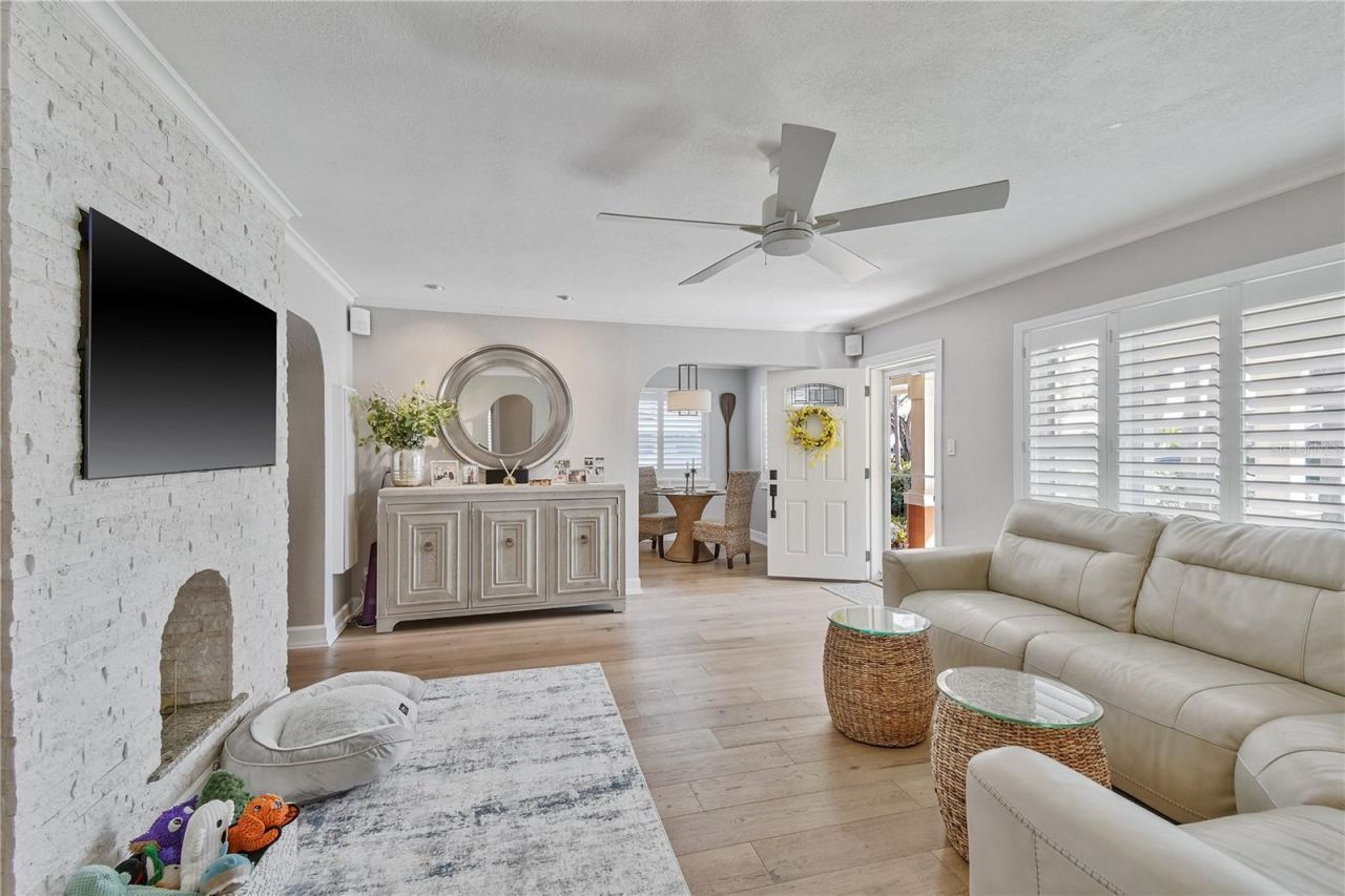 Beautifully landscaped and meticulously updated single family home 3BR + Office, 2 BATH, 2 CG + additional parking with Pool in prime high & dry location just five houses west of 4th St. N, a no evacuation zone, (NO FLOOD INS REQUIRED) with close proximity to major grocers (Publix, Fresh Market, Trader Joe's ), restaurants, doctors/dentists/eye care & much more. Originally built in 1947, it was purchased in 1999 by the current owners and has undergone multiple renovations to not only enhance and...Beautifully landscaped and meticulously updated single family home 3BR + Office, 2 BATH, 2 CG + additional parking with Pool in prime high & dry location just five houses west of 4th St. N, a no evacuation zone, (NO FLOOD INS REQUIRED) with close proximity to major grocers (Publix, Fresh Market, Trader Joe's ), restaurants, doctors/dentists/eye care & much more. Originally built in 1947, it was purchased in 1999 by the current owners and has undergone multiple renovations to not only enhance and update the original build, but also to add on the newer additions (2006-2009). Updates include engineered hardwood, tankless natural gas H20, complete exterior paint, newer roof main house, brand new roof second story home office, new insulation in attic, primary bathroom totally renovated, new impact-rated double french doors with built-in blinds, new kitchen update with beautiful maple quiet close drawers & doors and granite counters, newer beverage cooler, disposal & microwave, new range & dishwasher; new pool salt generating system along with pool re-surfacing and newer pool light. Custom made wood plantation shutters and ceiling fans in every room. Indoor-Outdoor custom speakers for great sound & entertainment as well as 75 flat screen tv outside. The second story 528 sq. ft. home office studio built in 2009 above the garage comes complete with built in storage and desk space has an entrance not only from the garage, but a separate outdoor entrance coming in from the expansive parking area. Currently being used as home-based office, would also make a great media room, music studio or art studio, or might possibly become an ADU or 4th bedroom/bath with additional plumbing work. The 528 sq. ft. two car garage features all built-in cabinetry and tool storage, plus stainless sink with large window, Maytag Bravos XL washer-dryer pair, and Samsung stainless refrigerator-freezer for extra food storage. On the opposite wall more storage and counter space. The pool is a feature in itself, being both in ground but raised enough to seat guests, and features a salt chlorinator generator system and heated by natural gas. Pool will heat up to 104 degrees if you like the feel of a hot tub in the winter. Travertine pavers have been installed in front walkway, front porch, back courtyard and sidewalk along the house, while leaving just enough land/mulch space for a dog to go outside using the built-in dog door. In addition, sprinkler system is on a well in both front and back yards. Back yard is totally enclosed with 6 ft. vinyl fencing. Tropical palms surround the outdoor space creating the feel of an island retreat. Custom designed fabric awning covers just the right amount of space over walkways and dining area, leaving an open sky ambiance for poolside suntanning or fire pit seating. In addition, there is parking for a boat plus more cars on the expansive parking pad. This home has been the host of many social gatherings, as many as 30 guests with indoor/outdoor entertaining, yet has an intimate feel and tons of character. You will be proud to call this beautiful home yours!