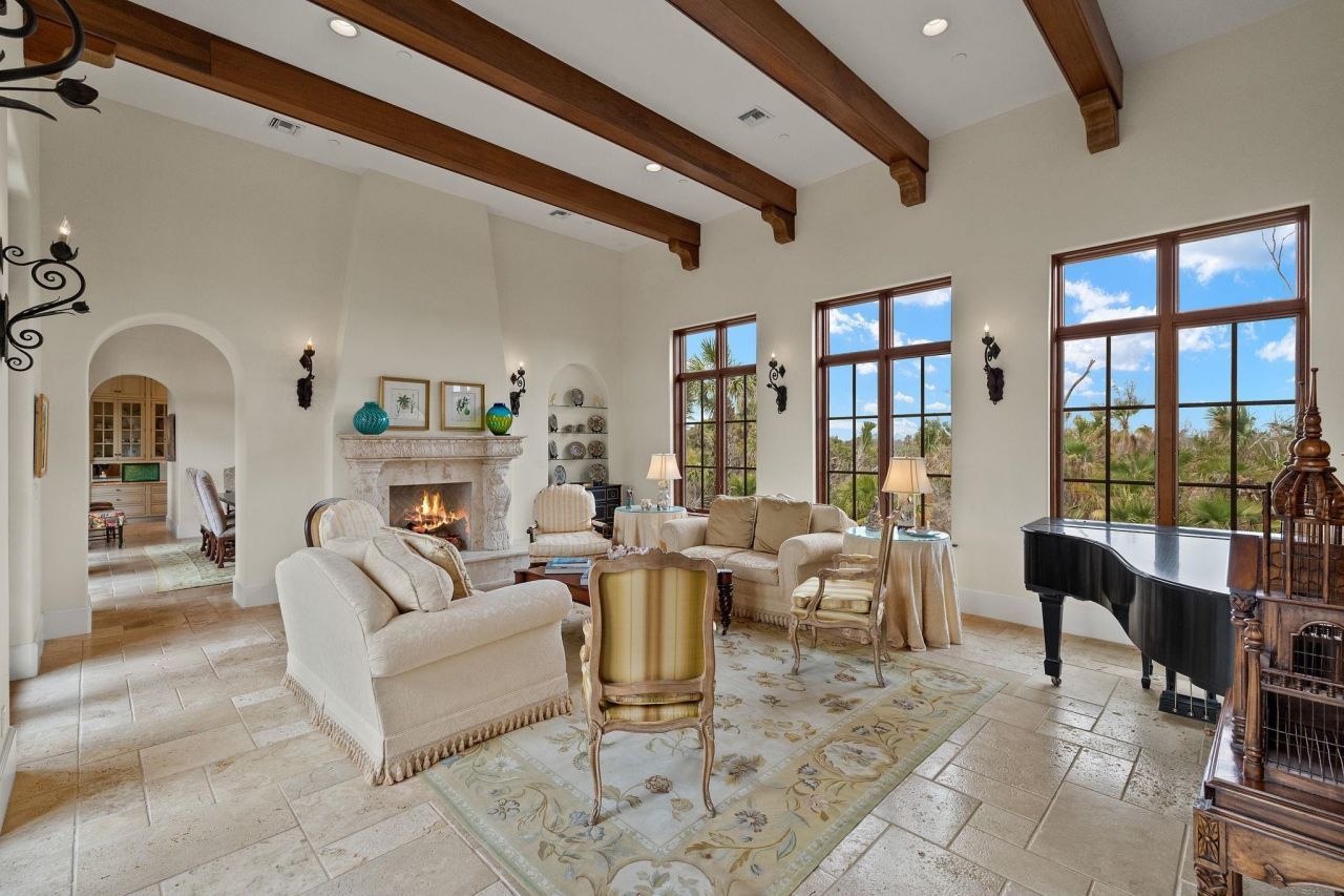 This exceptional custom-built home, meticulously designed and crafted by the sellers, offers the perfect blend of luxury, privacy, and craftsmanship. With 4 bedrooms and 3.5 baths, one of the bedrooms features a private, separate entrance?ideal for guests or extended family. The architectural style, reminiscent of a Mediterranean villa, invites you in with a long, private driveway that leads to a stunning wrought iron gate. An entry gate opens to reveal a magnificent courtyard complete with a ch...This exceptional custom-built home, meticulously designed and crafted by the sellers, offers the perfect blend of luxury, privacy, and craftsmanship. With 4 bedrooms and 3.5 baths, one of the bedrooms features a private, separate entrance?ideal for guests or extended family. The architectural style, reminiscent of a Mediterranean villa, invites you in with a long, private driveway that leads to a stunning wrought iron gate. An entry gate opens to reveal a magnificent courtyard complete with a charming pool and spa, along with a spacious patio area perfect for al fresco dining. Surrounded by iron gates, the pool area allows for refreshing breezes to flow through, creating an inviting, serene environment. Inside, the home is designed to impress at every turn. The kitchen is a true showstopper, featuring a vaulted ceiling with beautiful wood beams that carry through to the living and dining rooms. The kitchen boasts granite countertops, custom cabinetry, and high-end appliances, including a Thermador 6-burner stove, alongside a convenient butler's pantry. The living and dining areas are bathed in natural light, thanks to the abundance of windows and French doors that open to the picturesque balcony. The primary suite is an oasis of luxury, offering access to a balcony with sweeping views of the pool and tropical landscaping, along with a spa-like bathroom. The second floor is home to two guest rooms that share a spacious Jack and Jill bathroom. A charming den or office, featuring custom built-ins, adds even more functionality to this thoughtfully designed home. For added privacy, the guest suite, accessible via the balcony, includes an ensuite and a loft for little ones?perfect for extended stays or visiting friends and family. Every detail has been thoughtfully curated, from the travertine floors throughout the living areas to the high ceilings with beam work, crown molding, and exquisite gas fireplace in the living room. The home also boasts impact windows, a new tile roof, custom draperies, and hand etched doors that elevate its elegance. Additional features include ample storage, garage and bonus space, all while offering complete privacy overlooking a preserve and an eagle's nest. Just a short walk or golf cart ride away, you'll find deeded beach access, where you can enjoy the famous Sanibel beaches in mere minutes. Situated in the highly sought-after Gulf Ridge community, known for its exquisite homes, this property is a one-of-a-kind gem. Built with the utmost attention to detail and quality, this home is truly a rare opportunity for those seeking luxury and tranquility.