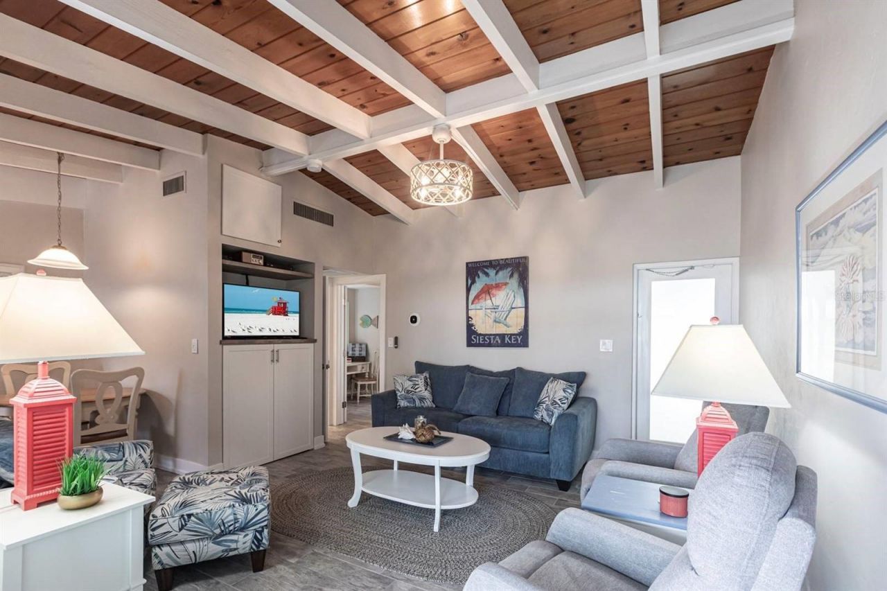Starting at $179/night. Discover a luxurious 1-bedroom, 1-bathroom condominium at Casa Mar, where comfort and style meet just steps from the beach. The spacious primary suite features a king-sized bed, while the fully equipped kitchen flows seamlessly into a generous dining area and inviting living room, perfect for relaxing or entertaining. Step outside to enjoy a screened-in lanai furnished with a comfortable sectional, ideal for morning coffee or unwinding after a day in the sun. Convenience ...Starting at $179/night. Discover a luxurious 1-bedroom, 1-bathroom condominium at Casa Mar, where comfort and style meet just steps from the beach. The spacious primary suite features a king-sized bed, while the fully equipped kitchen flows seamlessly into a generous dining area and inviting living room, perfect for relaxing or entertaining. Step outside to enjoy a screened-in lanai furnished with a comfortable sectional, ideal for morning coffee or unwinding after a day in the sun. Convenience is key with a private carport located just outside your door. Casa Mar offers an impressive array of resort-style amenities, including two sparkling swimming pools, tennis and pickleball courts, and shuffleboard for those who love outdoor fun. Enjoy leisurely meals at multiple grilling stations with picnic tables, or unwind at one of the two beach pavilions along more than 200 feet of private beachfront. With multiple laundry facilities on-site and a convenient Siesta Key trolley stop at the entrance, exploring the vibrant local area is effortless. Embrace the ultimate coastal lifestyle at Casa Mar, where every moment invites you to relax, rejuvenate, and soak in the beauty of Siesta Key. Contact office for information.