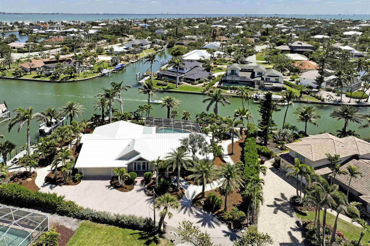 Your private tropical boating & beach retreat awaits. Experience the ultimate in coastal living with this beautifully remodeled residence, ideally situated on a wide waterway with intersecting canals and surrounded by lush, native landscaping. Designed for modern comfort and effortless entertaining, this stunning home features an open-concept living area with vaulted ceilings and abundant natural light. The gourmet kitchen is a true showpiece, showcasing quartz countertops, high-end appliances, ...Your private tropical boating & beach retreat awaits. Experience the ultimate in coastal living with this beautifully remodeled residence, ideally situated on a wide waterway with intersecting canals and surrounded by lush, native landscaping. Designed for modern comfort and effortless entertaining, this stunning home features an open-concept living area with vaulted ceilings and abundant natural light. The gourmet kitchen is a true showpiece, showcasing quartz countertops, high-end appliances, induction stove, a spacious center island, a shimmering mosaic backsplash, and LED lighting above and below the custom cabinetry. Elegant light tile flooring flows seamlessly throughout the home, complementing the thoughtful floor plan that includes a private guest wing with two ensuite bedrooms. Totally remodeled, recent upgrades include a new standing seam metal roof, replacement of all cast iron drainage lines with PVC, a new HVAC system, impact-rated windows and doors, and a hurricane-rated garage door?offering both comfort and peace of mind.Outdoors, enjoy resort-style living with a custom-designed pool and spa and framed by tropical landscaping designed by Bob Walsh and overlooking a scenic intersecting canal basin.Located in the sought-after east-end boating community of Shell Harbor, this property offers exceptional privacy at the end of a quiet cul-de-sac, with quick biking access to deeded beach access and private parking. Boaters will appreciate two docks with lifts (6,000/16,000), complete with water and electric service, providing easy access to both the bay and the Gulf.A comprehensive list of improvements is available upon request.