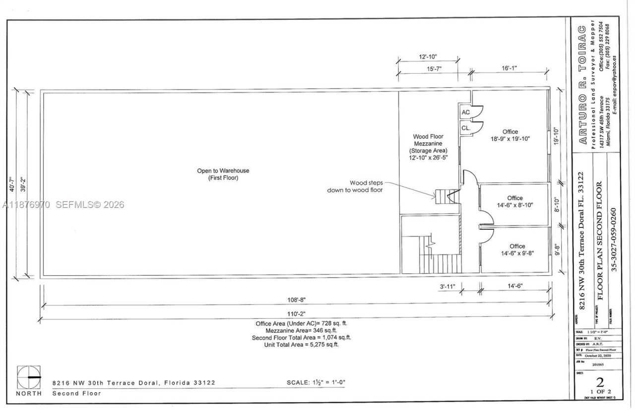 Office /warehouse Combo for Lease (modified gross) in the heart of Doral. Heavy manufacturing permitted. Taxroll reflects 4,390 SF. As per owners survey, total square footage of unit reflects 5,275 SF. 3 loading doors (1 is aramp and 2 are truck height), 24 Ft ceiling. Showroom, kitchen/break room, and 2 bathrooms downstairs. 3private offices upstairs. 10 assigned parking spaces. Tenant to carry insurance on their content/inventory ofgoods kept in the warehouse.