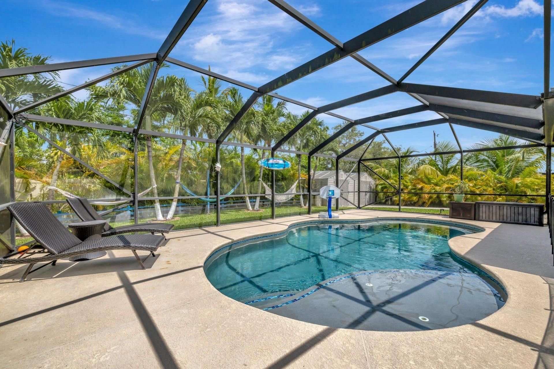 WOW... DID YOU SEE THE PHOTOS? ... THIS IS IT! PEACE - QUIET - PARADISE IN YOUR BACKYARD... 4/2 WITH 2 CAR GARAGE... TILE THROUGHOUT, BUT MASTER AND 3RD BEDROOM WITH LAMINATE WOOD FLOORS.THIS HOME HAS A BEAUTIFUL SWIMMING POOL, EXTRA LARGE ENCLOSED AREA WITH EXTENDED PATIO, SOLAR HEATER FOR THE POOL, WELL FOR THE IRRIGATION SYSTEM, 2ND DRIVEWAY FOR YOUR BOAT OR RV TO PARK NEXT TO THE HOUSE, FENCED YARD SURROUNDED BY PALM TREES FOR PRIVACY, 2 SHEDS TO KEEP ALL YOUR ''STUFF'', HOUSE PAINTED INSIDE 2021, OUTSIDE IN 2022 - KITCHEN 08/2021, ROOF 06/2022 WITH 2 SOLAR VENTS - BATHROOMS 11/2022... COME LIVE IN THIS AMAZING PIECE OF PARADISE.BEHIND WALGREENS, CLOSE TO BRAVO, ALDI, WALMART NEIGHBORHOOD, PUBLIX, SAMS, SUPER WALMART, WIN-DIXIE... I-95, TURNPIKE... MINUTES AWAY FROM EVERYWHERE...