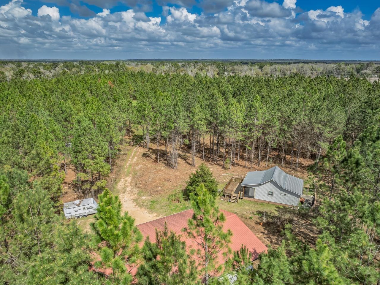 Nestled among towering pine trees on 35.70 acres, this charming 2021-built cabin offers privacy, natural beauty, and endless possibilities?with no HOA and no flood insurance required for the home. A long, private, cleared driveway welcomes you in, setting the tone for this peaceful retreat. The home features an open floor plan, walk-in closet, indoor laundry room with storage, and a beautifully tiled shower. The custom kitchen includes light wood cabinetry extending to the ceiling for generous...Nestled among towering pine trees on 35.70 acres, this charming 2021-built cabin offers privacy, natural beauty, and endless possibilities?with no HOA and no flood insurance required for the home. A long, private, cleared driveway welcomes you in, setting the tone for this peaceful retreat. The home features an open floor plan, walk-in closet, indoor laundry room with storage, and a beautifully tiled shower. The custom kitchen includes light wood cabinetry extending to the ceiling for generous storage, granite countertops, floating shelves, and a double stainless steel undermount sink. Enjoy the peaceful surroundings from the large screened porch and attached elevated wooden deck?perfect for relaxing or entertaining while overlooking the wooded landscape, native wildflowers, and abundant wildlife. The property also features a 40x60 barn with water and electricity, partially enclosed with a concrete floor, offering ample space for vehicles, equipment, or workshop use. An RV hookup is already in place. With abundant wildlife, timber rights, and the ability to divide the land, this property offers incredible flexibility?build your dream homestead, create a multi-generational setup by using the cabin as a guest or in-law suite, or explore income-producing opportunities such as a short-term rental. Ideally suited for a private estate, recreational retreat, or weekend getaway, all while being conveniently located near Tallahassee.