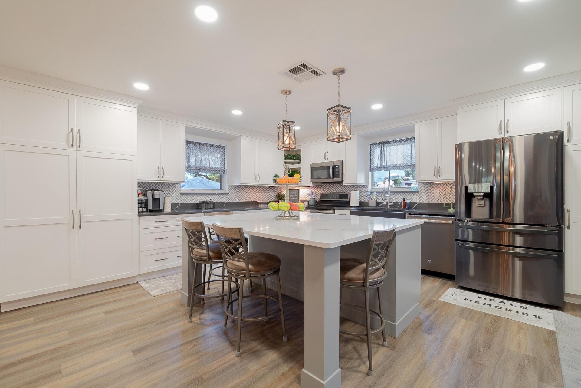 WOW~ 2-Homes in 1 as it has a Full Basement w/2nd Full Kitchen! Over 1/2 Acre! This Amazing home has been Beautifully Updated & has Sprawling Great Room w/Luxury-Waterproof Floors, Real-Wood-Buring Fireplace, 6'' Baseboards, Solid Core Interior Doors, Crown Molding in every room, New Kitchen w/White Shaker Cabinets & Huge Island w/Grey Shaker Cabinets all w/Soft Close hinges. Quartz Countertops & a Farm Sink. Black-Stainless Appliances! All New Recessed Lighting on Dimmers, New Train A/C. 3 Lg Bedrooms, 3 full remodeled baths. Huge Mud Room! AND the BASEMENT has another 3 Lg br, Full Kitchen w/Wood Cabinets, Granite Counter & Island! Newer Well, Front & Back Screened Porch, Fenced Yard, Shed, RV & Boat Parking! PLUS ++ - Seller to Offer $20k towards New Roof or Closing Costs! MUST SEE! Two Homes in One!!! 2136ftsq on Main Level and 2136ftsq Finished Basement. Lots of Closets for Storage! Super Tall Garage and Attic you can stand in with flooring. Corner Lot on over a 1/2 Acre ~ 0.5675 acres. Solid CBS with Poured Concrete on both levels with Hardie Board exterior. Fire Pit off Master Wood Deck. Basement has two entrances! Located on one of the Highest Elevations in Hobe Sound! - This is truly a one-of-a-kind property!!! A MUST SEE!!!