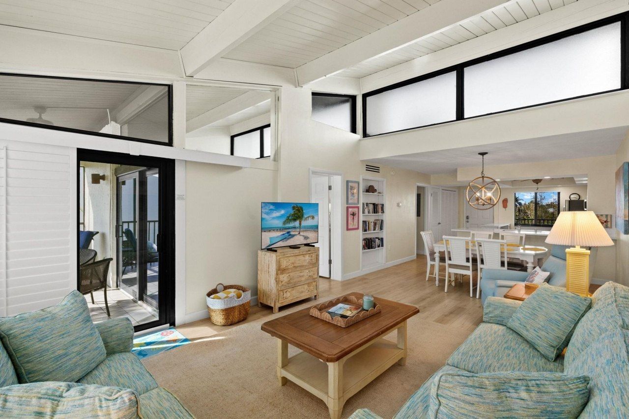 This exquisite third-floor end unit has been completely remodeled and offers the perfect blend of modern luxury and coastal charm. Boasting stainless steel appliances, a spacious breakfast bar, and a seamless open concept floor plan, this condominium is designed for both comfort and style. The beautiful flooring enhances the space, creating a bright and airy atmosphere throughout. Vaulted ceilings with inlaid wood and clerestory windows soar above, adding a unique touch of elegance and natural l...This exquisite third-floor end unit has been completely remodeled and offers the perfect blend of modern luxury and coastal charm. Boasting stainless steel appliances, a spacious breakfast bar, and a seamless open concept floor plan, this condominium is designed for both comfort and style. The beautiful flooring enhances the space, creating a bright and airy atmosphere throughout. Vaulted ceilings with inlaid wood and clerestory windows soar above, adding a unique touch of elegance and natural light to every room. The top-floor location offers an unparalleled sense of privacy and grandeur. From the large screened lanai, enjoy serene glimpses of the Gulf, perfect for relaxing or entertaining guests. The expansive primary bedroom also features vaulted ceilings with inlaid wood and is complemented by a remodeled, spa-like bath. Located in a highly desirable beachfront complex, you'll have access to fantastic amenities including a large pool, picnic area, clubhouse, grills, tennis court, pickleball courts, and shuffleboard, all set along a picturesque stretch of pristine beach. This rare gem offers both privacy and stunning views, making it the perfect place to call home or a luxurious vacation getaway.